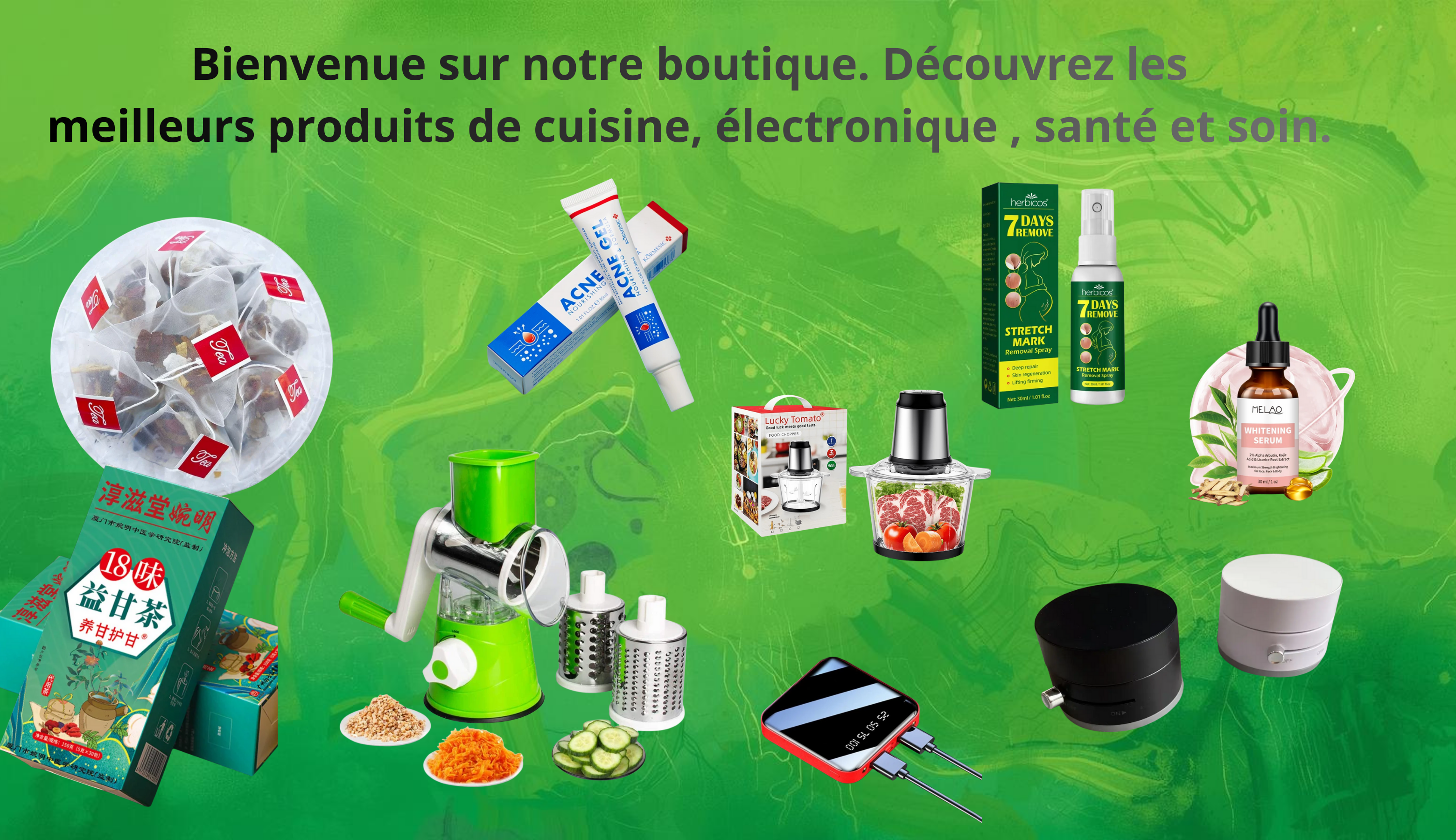 Bienvenue dans notre univers ! Découvrez une boutique où chaque détail compte et où chaque produit raconte une histoire. Ici, l’élégance rencontre la qualité, et chaque création est pensée pour inspirer, sublimer et simplifier le quotidien. Explorez nos collections exclusives, laissez-vous séduire par nos nouveautés et profitez d’une expérience d’achat fluide, moderne et 100 % plaisir. ✨ Offrez-vous le meilleur, vous le méritez. 🛍️ Bonne découverte et bon shopping !